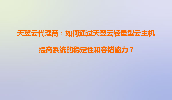 2025-09-16天翼云代理商:如何通过天翼云轻量型云主机提高系统的稳定性和容错能力? 引言 在数字化转型的浪潮中,企业对云计算的需求日益增长,尤其是在系统的稳定性和容错能力方面提出了更高的要求。作...