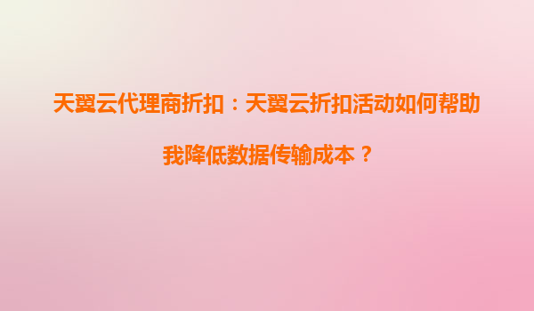 2025-09-16天翼云代理商折扣:如何通过天翼云折扣活动降低数据传输成本? 一、数据传输成本的挑战与企业痛点 在数字化转型的浪潮中,企业面临海量数据的存储和传输需求,随之而来的是高昂的...
