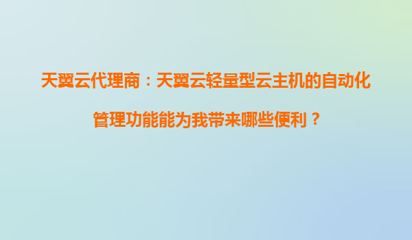 2025-09-16天翼云代理商解析:天翼云轻量型云主机的自动化管理功能带来的核心便利 一、引言:数字化转型中的轻量化需求 在中小企业及个人开发者加速上云的背景下,天翼云轻量型云主机凭借其高性价比和灵活配置成为市场热点...