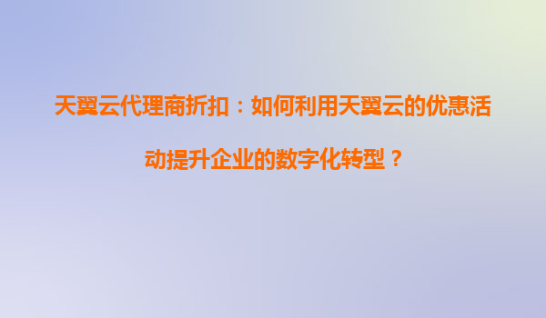 2025-09-16天翼云代理商折扣:如何利用天翼云的优惠活动提升企业的数字化转型 一、数字化转型的必然趋势与云计算的基石作用 在当前数字经济蓬勃发展的背景下,企业数字化转型已从“可选”变为“必...