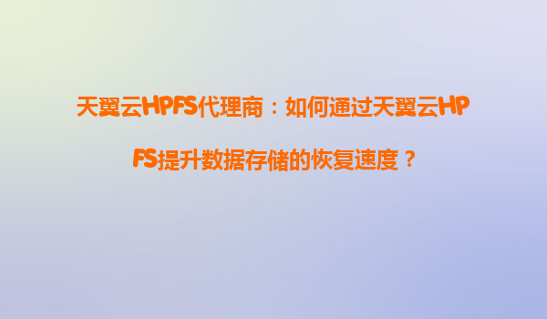 天翼云HPFS代理商:如何通过天翼云HPFS提升数据存储的恢复速度? 一、天翼云HPFS的核心优势 天翼云高性能文件存储服务(HPFS)是中国电信推出的企业级分布式文件存储解决方案,专为...