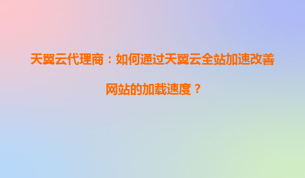 2025-09-16天翼云全站加速:优化网站加载速度的解决方案 1.网站速度对用户体验的重要性 在当今数字化时代,网站的加载速度直接影响用户体验和业务转化率。研究表明,如果网页加载时间超过3秒,53%的用户会选择离开...