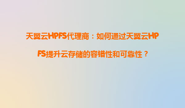 2025-09-16天翼云HPFS代理商:如何通过天翼云HPFS提升云存储的容错性和可靠性? 一、天翼云HPFS的核心特性与优势 天翼云高性能文件存储服务(HPFS)是中国电信基于分布式架构推出的企业级云存储解决方案,其核心优势...