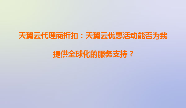 2025-09-16天翼云代理商折扣:天翼云优惠活动能否提供全球化服务支持? 一、天翼云的全球化服务能力 天翼云作为中国电信旗下的云计算品牌,依托中国电信的全球化网络基础设施,已构建覆盖全球主要地区的...