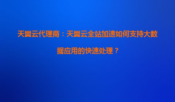 2025-09-16天翼云代理商:天翼云全站加速如何支持大数据应用的快速处理? 引言 随着大数据技术的快速发展,越来越多的企业开始依赖大数据分析来优化业务流程和提升竞争力。然而,大数据处理过程中的高延迟和低效率问题常...