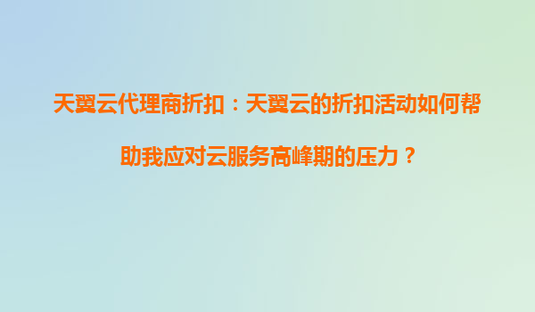 2025-09-06天翼云代理商折扣:天翼云的折扣活动如何帮助我应对云服务高峰期的压力? 一、天翼云的折扣活动与高峰期压力的关联 在面对云服务高峰期时,企业通常面临资源不足、成本激增和性能瓶颈等问题。天翼云代理商...