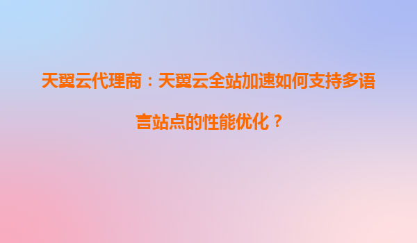 2025-09-06天翼云全站加速如何支持多语言站点的性能优化 全球化业务需求下的多语言挑战 随着企业全球化布局加速,多语言网站成为连接国际用户的重要窗口。然而,不同地区的访问延迟、语言版本切换效...