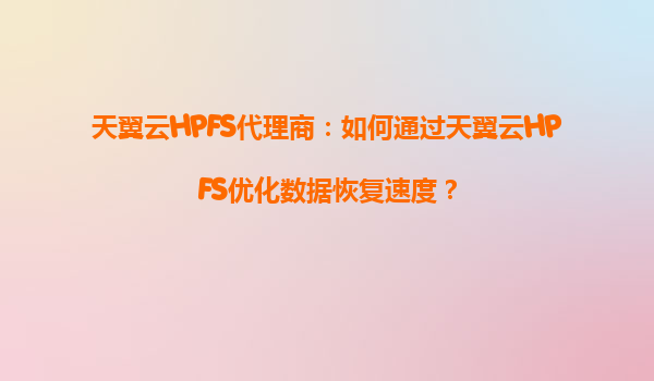 2025-09-06天翼云HPFS代理商:如何通过天翼云HPFS优化数据恢复速度? 一、引言 随着企业数据量的激增,高效可靠的数据存储和快速恢复能力变得至关重要。天翼云HPFS(High-PerformanceFileStorage)是一种高性能文件存储服...