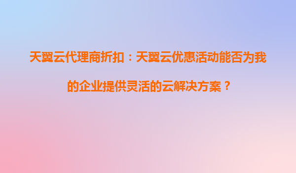 2025-09-06天翼云代理商折扣:天翼云优惠活动能否为我的企业提供灵活的云解决方案? 引言 在当前数字化浪潮下,企业对云计算的需求日益增长。无论是初创公司还是大型企业,都需要灵活、高效且经济实惠的...