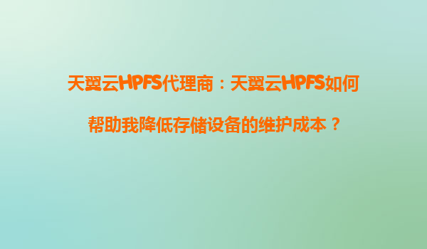 2025-09-05天翼云HPFS代理商:天翼云HPFS如何帮助降低存储设备维护成本? 一、传统存储维护成本高企的痛点 在数字化转型进程中,企业数据量呈指数级增长,传统存储方案面临诸多挑战: 硬件投入大:需频...