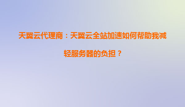 2025-09-05天翼云全站加速:高效减轻服务器负担的智能解决方案 服务器负担过重的常见痛点 随着企业数字化转型加速,网站和应用程序的访问量激增,服务器面临巨大压力:高并发请求导致响应延迟、大流量下载占用带宽、远程...