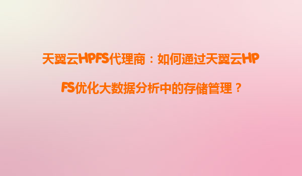 2025-09-05天翼云HPFS代理商:天翼云HPFS如何为我的云存储带来更好的可管理性? 一、天翼云HPFS的概述与核心优势 天翼云HPFS(High-PerformanceFileStorage)是中国电信天翼云推出的一款高性能文件存储服务,专为企业级...