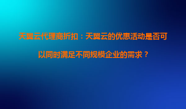 2025-09-05天翼云代理商折扣:天翼云的优惠活动是否能满足不同规模企业的需求? 随着云计算技术的快速发展,越来越多的企业开始将业务迁移至云端。作为中国领先的云服务提供商之一,天翼云凭借其强大的基础设施和灵活的...