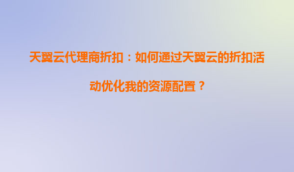 2025-09-05天翼云代理商折扣:如何通过天翼云的折扣活动优化我的资源配置? 在当前企业数字化转型的浪潮中,云计算已成为支撑业务发展的核心基础设施。作为国内领先的云服务提供商之一,天翼云以其稳定的性能、安全...