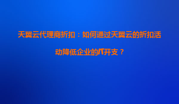 如何通过天翼云代理商折扣活动降低企业IT开支 一、天翼云代理商折扣的价值 天翼云作为中国电信旗下的云计算品牌,凭借其央企背景和强大的基础设施能力,为企业用户提供稳定可靠的云服务。通过天翼云官方授...