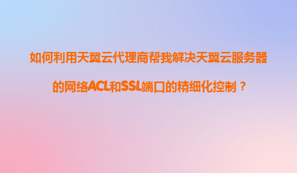 2025-11-04如何利用天翼云代理商实现天翼云服务器的网络ACL与SSL端口精细化控制 一、天翼云在网络ACL与SSL管理中的核心优势 天翼云作为中国电信旗下云服务品牌,在网络安全领域具备以下差异化优势: 运...