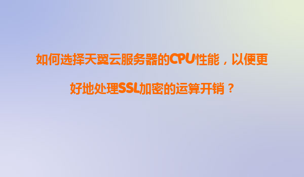 如何选择天翼云服务器的CPU性能以优化SSL加密运算开销 一、SSL加密的运算需求与CPU的关系 SSL/TLS协议广泛应用于网站、API等场景的数据加密传输,但SSL握手过程中的非对称加密(如RSA、E...