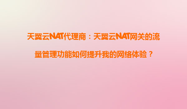 2025-09-02天翼云NAT代理商:天翼云NAT网关的流量管理功能如何提升网络体验? 在当今数字化转型浪潮中,企业对云网络的管理需求日益增长。天翼云NAT网关作为中国电信旗下重要的网络服务组件,结合天翼云代理商的本地化服...