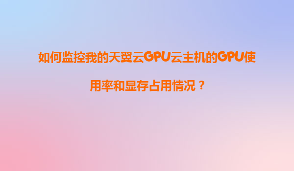 2025-11-04如何监控天翼云GPU云主机的GPU使用率和显存占用情况 一、GPU监控的重要性 在天翼云GPU云主机的使用过程中,实时监控GPU使用率和显存占用情况是优化资源利用率、保障应用性能稳定的关键。...