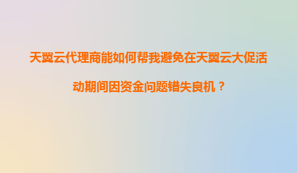 天翼云代理商如何帮助您在大促期间避免资金问题,抓住商机? 引言:大促活动的机遇与挑战 天翼云作为中国电信旗下的云计算服务品牌,每年都会推出多次大促活动,为企业...