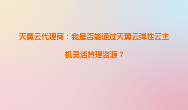 天翼云代理商:我是否能通过天翼云弹性云主机灵活管理资源? 在当今数字化快速发展的时代,企业对云计算的需求日益增长。作为中国电信旗下的云计算服务品牌,天翼云凭借其强大的技术实力和丰富的行业经验,成为...