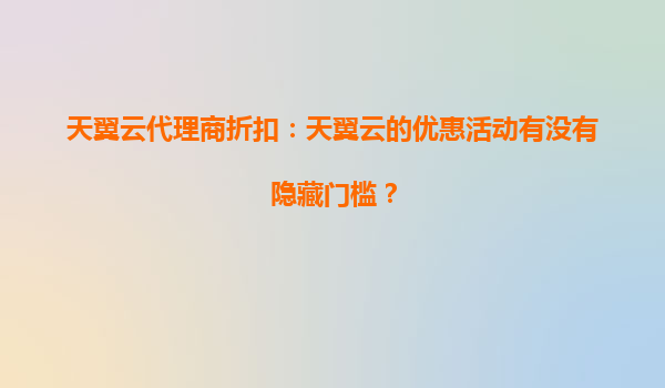2025-08-29天翼云代理商折扣:天翼云的优惠活动有没有隐藏门槛? 一、天翼云的核心优势 天翼云作为中国电信旗下的云计算品牌,凭借其强大的基础设施和丰富的行业经验,在云计算领域占据重要地位。其核心优势主要体现...