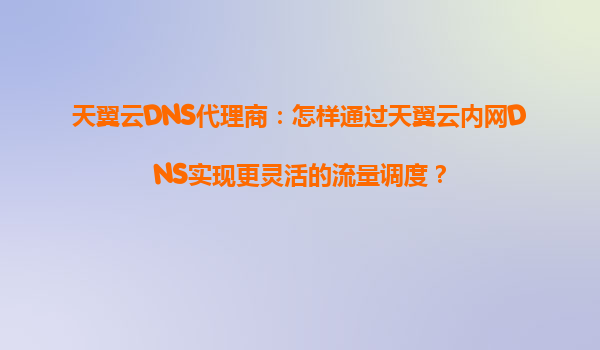 2025-08-29天翼云DNS代理商:怎样通过天翼云内网DNS实现更灵活的流量调度? 一、天翼云内网DNS的核心优势 天翼云作为中国电信旗下的云计算服务品牌,其内网DNS服务凭借以下核心优势,为企业提供了高效的流量调度能力...