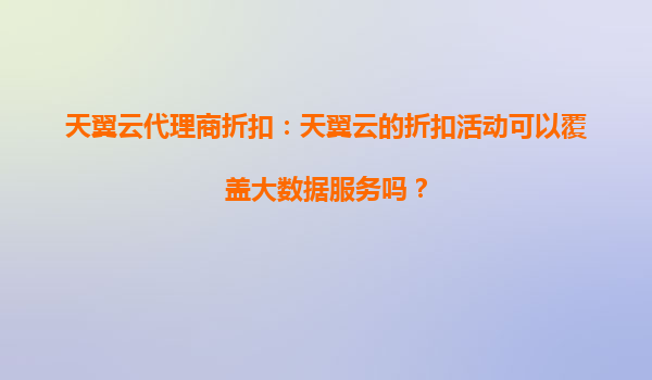 2025-08-29天翼云代理商折扣:大数据服务能否享受优惠?解析与优势盘点 一、天翼云折扣活动的覆盖范围 天翼云作为中国电信旗下的云计算服务商,定期推出各类折扣活动以吸...
