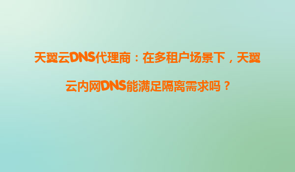 天翼云DNS代理商:多租户场景下的内网DNS隔离能力解析 一、多租户场景的DNS隔离挑战 在云计算环境中,多租户架构要求不同用户或业务单元的资源必须严格隔离,其...