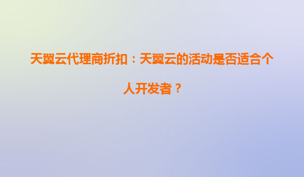 2025-08-29天翼云代理商折扣:天翼云的活动是否适合个人开发者? 一、天翼云的核心优势 天翼云作为中国电信旗下的云计算品牌,凭借央企背景和技术实力,在基础设施、安全性和合规性方面具有显著优...