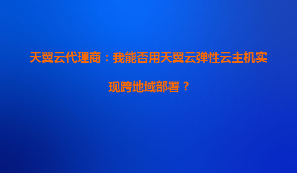 2025-08-29天翼云代理商:我能否用天翼云弹性云主机实现跨地域部署? 在当今数字化时代,企业对于云计算的需求日益增长,尤其是跨地域部署的需求。天翼云作为中国电信旗下的云计算服务提供商,凭借其强大的基础设施和丰富...