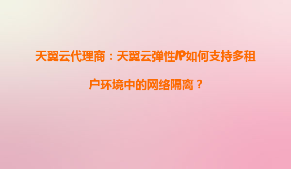 2025-08-27天翼云代理商:天翼云弹性IP如何支持多租户环境中的网络隔离 引言 随着云计算技术的快速发展,多租户环境已成为企业IT架构的重要组成部分。在多租户场景下,网络隔离是确保数据安全和业务稳定的关键需求。...