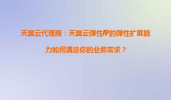2025-08-27天翼云代理商:天翼云弹性IP的弹性扩展能力如何满足你的业务需求? 一、天翼云弹性IP的核心优势 天翼云作为中国电信旗下的云计算服务品牌,其弹性IP(EIP)服务凭借以下核心优势,成为企业数字化转型的重要...