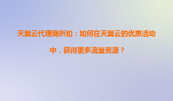 2025-08-27天翼云代理商折扣:如何在天翼云的优惠活动中,获得更多流量资源? 一、天翼云的核心优势与资源背景 天翼云作为中国电信旗下的云计算服务品牌,凭借运营商级的基础设施和全国覆盖的网络资源,在带宽、存储...