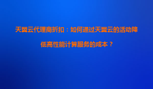 2025-08-27天翼云代理商折扣:如何通过天翼云的活动降低高性能计算服务的成本? 一、天翼云在高性能计算领域的核心优势 天翼云作为中国电信旗下的云计算服务品牌,凭借其强大的基础设施和资源整合能力,在高性能计算...