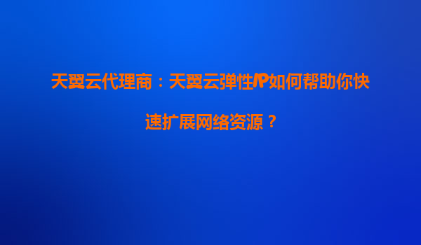 2025-08-26天翼云代理商:天翼云弹性IP如何帮助你快速扩展网络资源? 一、弹性IP的核心价值与天翼云优势 天翼云弹性IP(ElasticIP)是云计算中动态分配公网IP地址的服务,其核心价值在于帮助用户灵活应对业务变化。与...