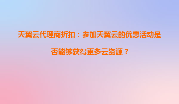 2025-08-26天翼云代理商折扣:参加天翼云的优惠活动是否能够获得更多云资源? 一、天翼云的核心优势 天翼云作为中国电信旗下的云计算品牌,凭借其央企背景和强大的基础设施能力,在市场中具有显著优势: ...