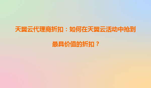 2025-08-26天翼云代理商折扣:如何在天翼云活动中抢到最具价值的折扣? 一、天翼云的核心优势 天翼云作为中国电信旗下的云计算品牌,凭借央企背景和强大的基础设施能力,在安全性、稳定性和本地化服务方...