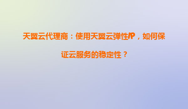 天翼云代理商:使用天翼云弹性IP,如何保证云服务的稳定性? 一、天翼云弹性IP的核心优势 天翼云弹性IP(EIP)是中国电信天翼云提供的动态公网IP资源,具备灵活绑定、高可用性和低延迟等特性,尤其适合代理...