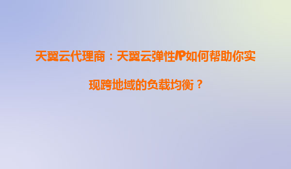 2025-08-26天翼云代理商:天翼云弹性IP如何帮助你实现跨地域的负载均衡? 引言 在当今数字化时代,企业对于云计算的需求日益增长,尤其是在负载均衡和跨地域部署方面。天...