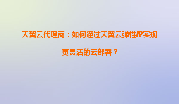 2025-08-26天翼云代理商:如何通过天翼云弹性IP实现更灵活的云部署? 一、弹性IP的核心价值与天翼云优势 在云计算领域,弹性IP(ElasticIP)是提升业务灵活性的关键组件。天翼云作为中国电信旗下...