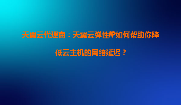 2025-08-26天翼云代理商:天翼云弹性IP如何帮助你降低云主机的网络延迟? 一、网络延迟对业务的影响 在云计算时代,网络延迟是影响用户体验和业务效率的关键因素之一。无论是电商平台的实时交易、...