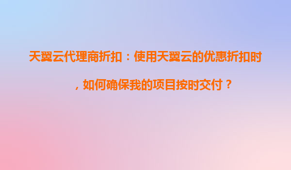 2025-08-23天翼云代理商折扣:如何确保项目按时交付 在数字化转型的浪潮中,云计算已成为企业提升效率、降低成本的关键工具。作为中国电信旗下的云计算服务品牌,天翼云凭借其强大的基础设施、稳定的性能和灵活的解决方...