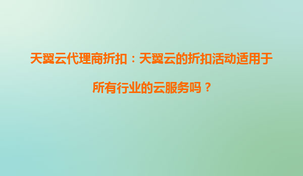 2025-08-23天翼云代理商折扣:天翼云的折扣活动适用于所有行业的云服务吗? 一、天翼云代理商折扣的适用范围 天翼云作为中国电信旗下的云计算服务品牌,凭借其强大的基础...
