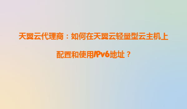 天翼云代理商指南:如何在天翼云轻量型云主机上配置和使用IPv6地址 前言:IPv6的重要性与天翼云的优势 随着互联网技术的飞速发展,IPv4地址资源日益枯竭,IPv6作为下一代互联网协议,逐渐成为主流。天翼云作为...