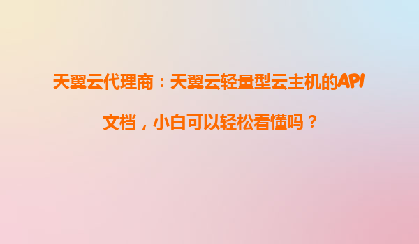 2025-11-01天翼云代理商:天翼云轻量型云主机的API文档详解——小白也能轻松上手 一、天翼云的核心优势 作为中国电信旗下的云计算服务品牌,天翼云凭借以下优势在市场中占据重要地位: 国家队背景...