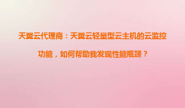 2025-11-01天翼云代理商:轻量型云主机云监控功能如何精准发现性能瓶颈 一、天翼云轻量型云主机的核心优势 天翼云轻量型云主机是基于中国电信强大网络基础设施打造的云计...