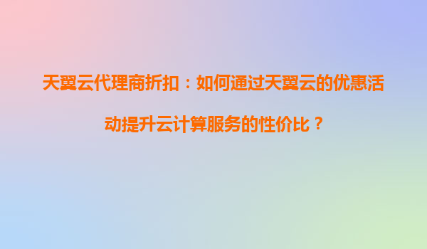 天翼云代理商折扣:如何通过天翼云的优惠活动提升云计算服务的性价比? 引言 在数字化转型加速的今天,云计算已成为企业提升运营效率和降低成本的关键工具。天翼云作为国内领先的云服务提供商,凭借其强大的基础设...