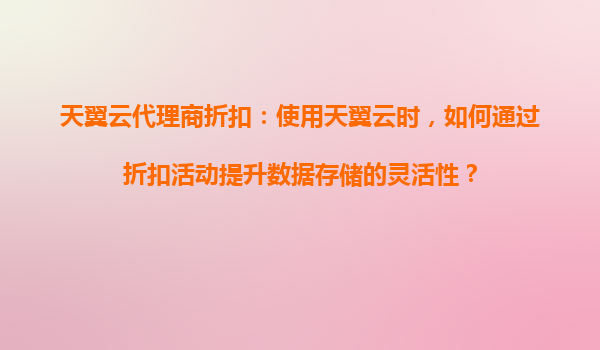 2025-08-22天翼云代理商折扣:提升数据存储灵活性的高效策略 引言 在数字化转型的浪潮中,企业对云服务的需求日益增长,尤其是数据存储的灵活性和成本效益成为关键考量。作为中国电信旗下的云服务品牌,天翼云凭借其...