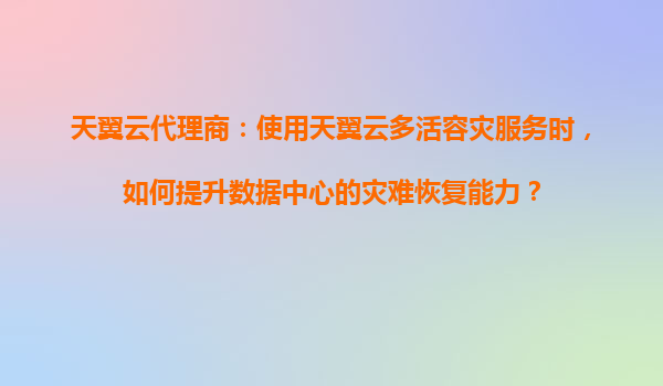 2025-08-21天翼云代理商:天翼云的多活容灾服务如何提升跨区部署的灵活性? 一、多活架构打破地域限制 天翼云的多活容灾服务基于分布式云原生架构,通过在全国范围内部署多个可用区,支持业务系统跨地域多活部署。这...